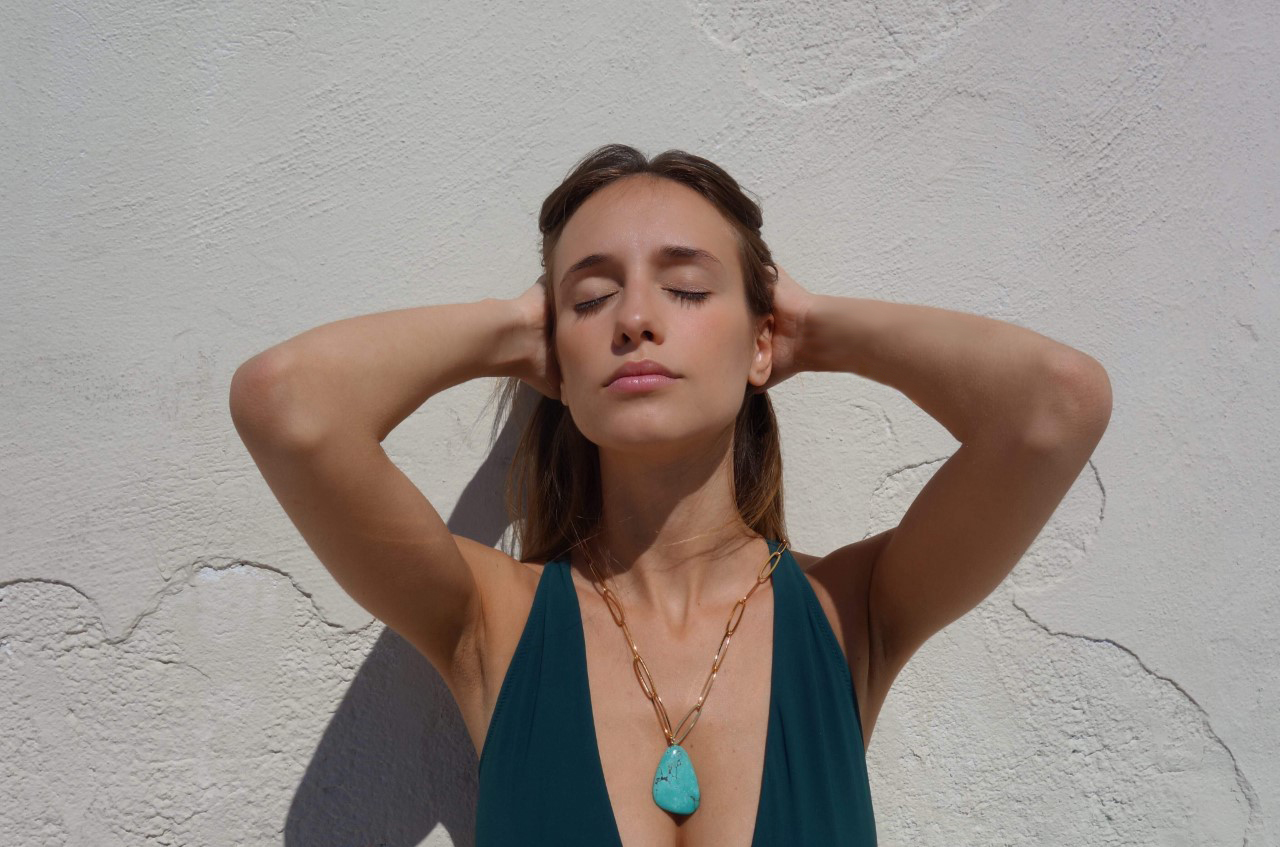 Bijoux dorés à l’or fin 24 carats avec pierres semi précieuses, faits à la main.