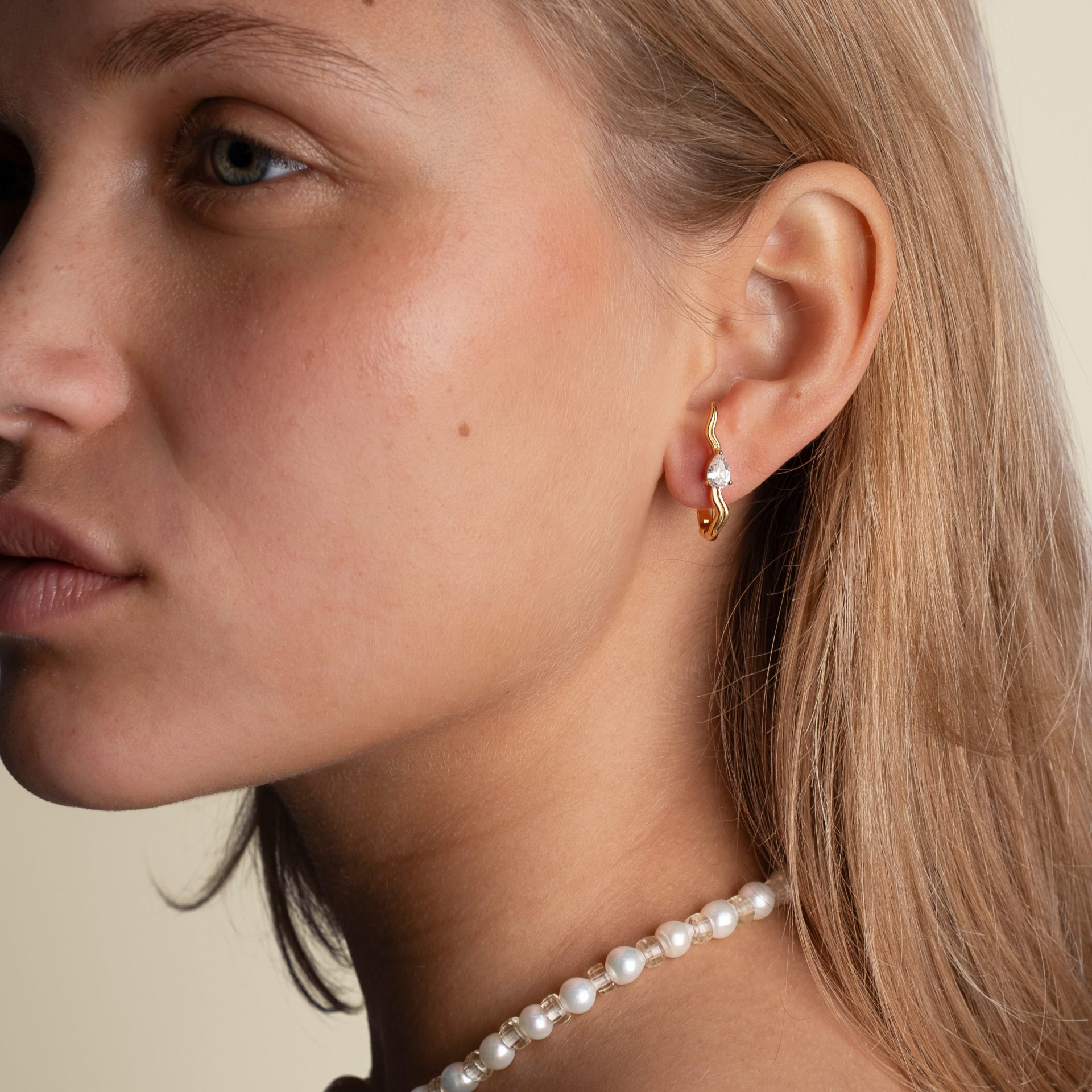 Les boucles d’oreilles Wavy dessinent une ligne ondulée inspirée du mouvement naturel des vagues.