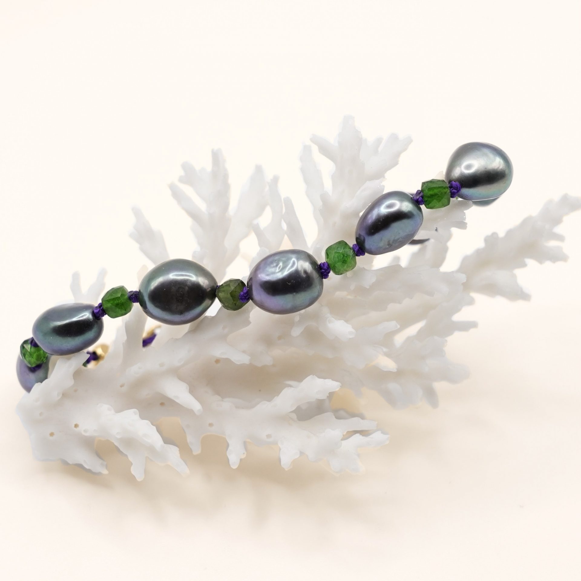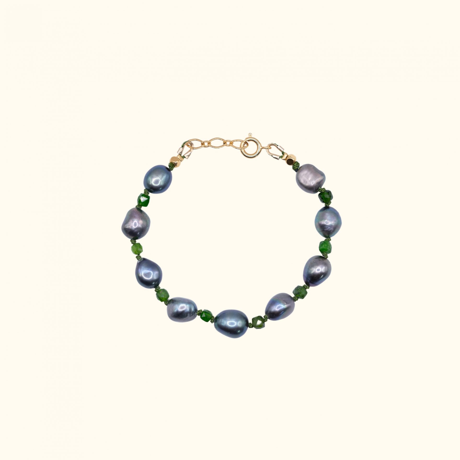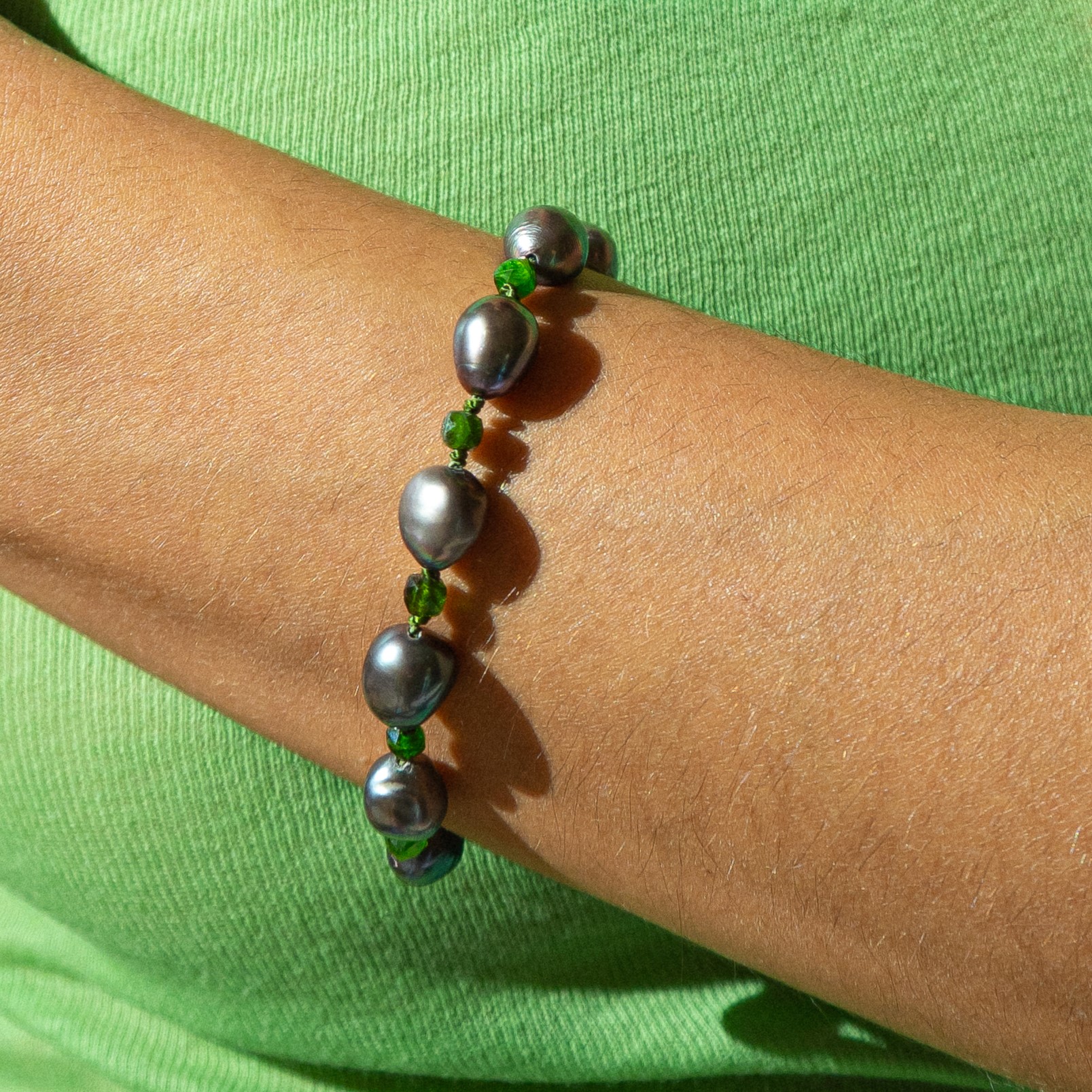 Bracelet Bonbon – Perle de Culture grise & Diopside