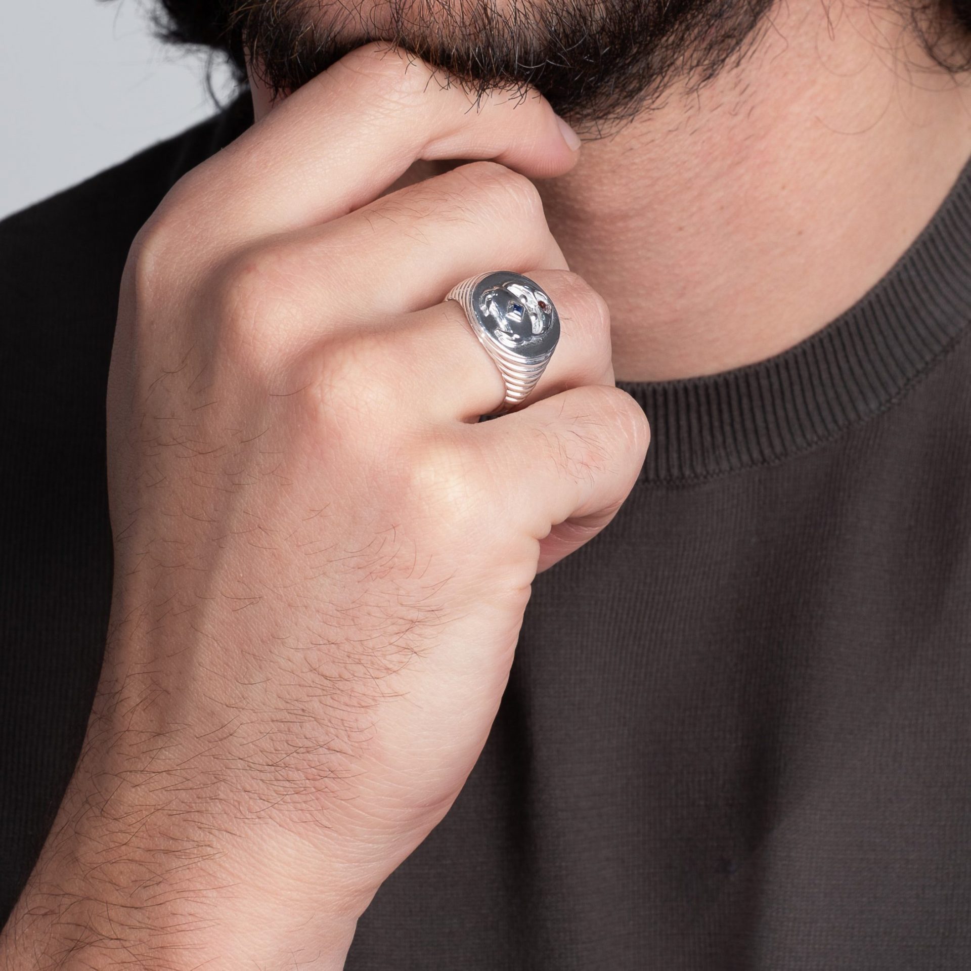 Chevalière iconique de la maison, ornée du crabe, symbole fondateur de la marque.