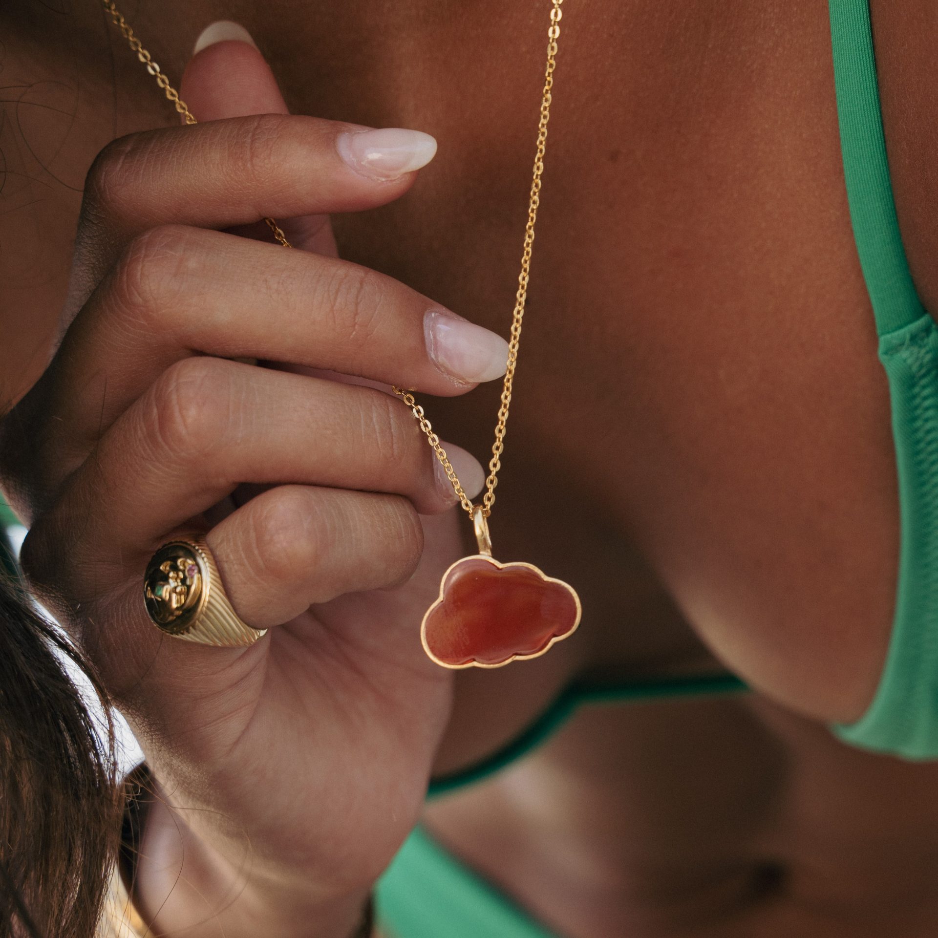 Collier en argent massif plaqué or 3 microns orné d’un pendentif nuage en cornaline.