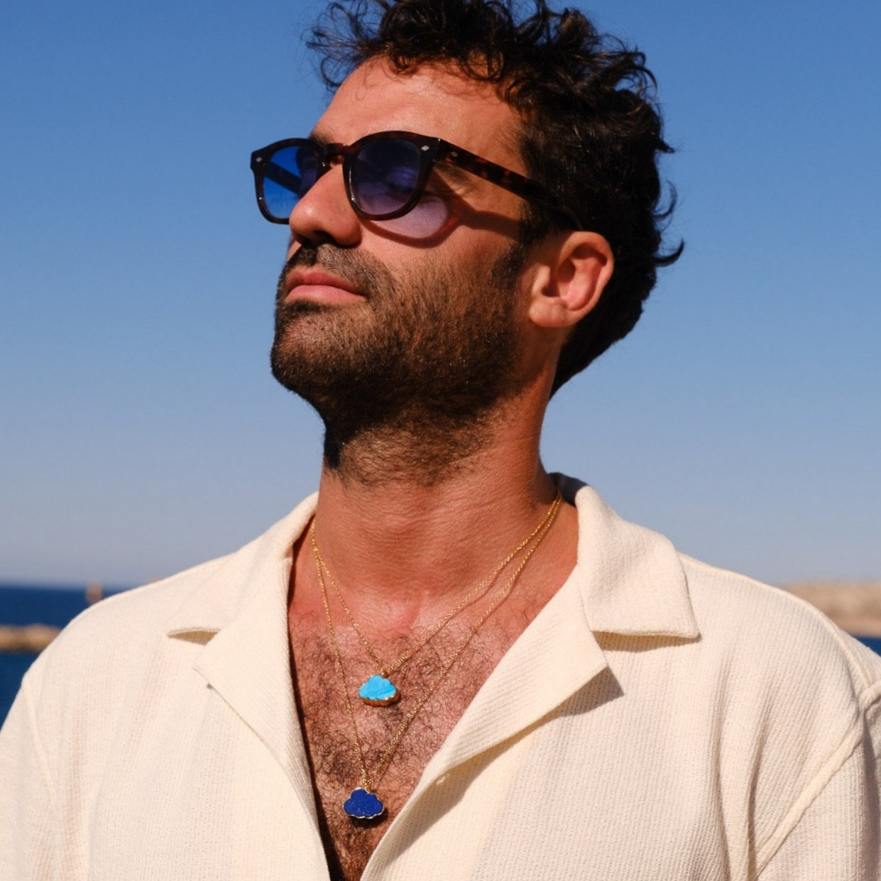 Collier doré à l’or fin orné d’un pendentif nuage en lapis lazuli.