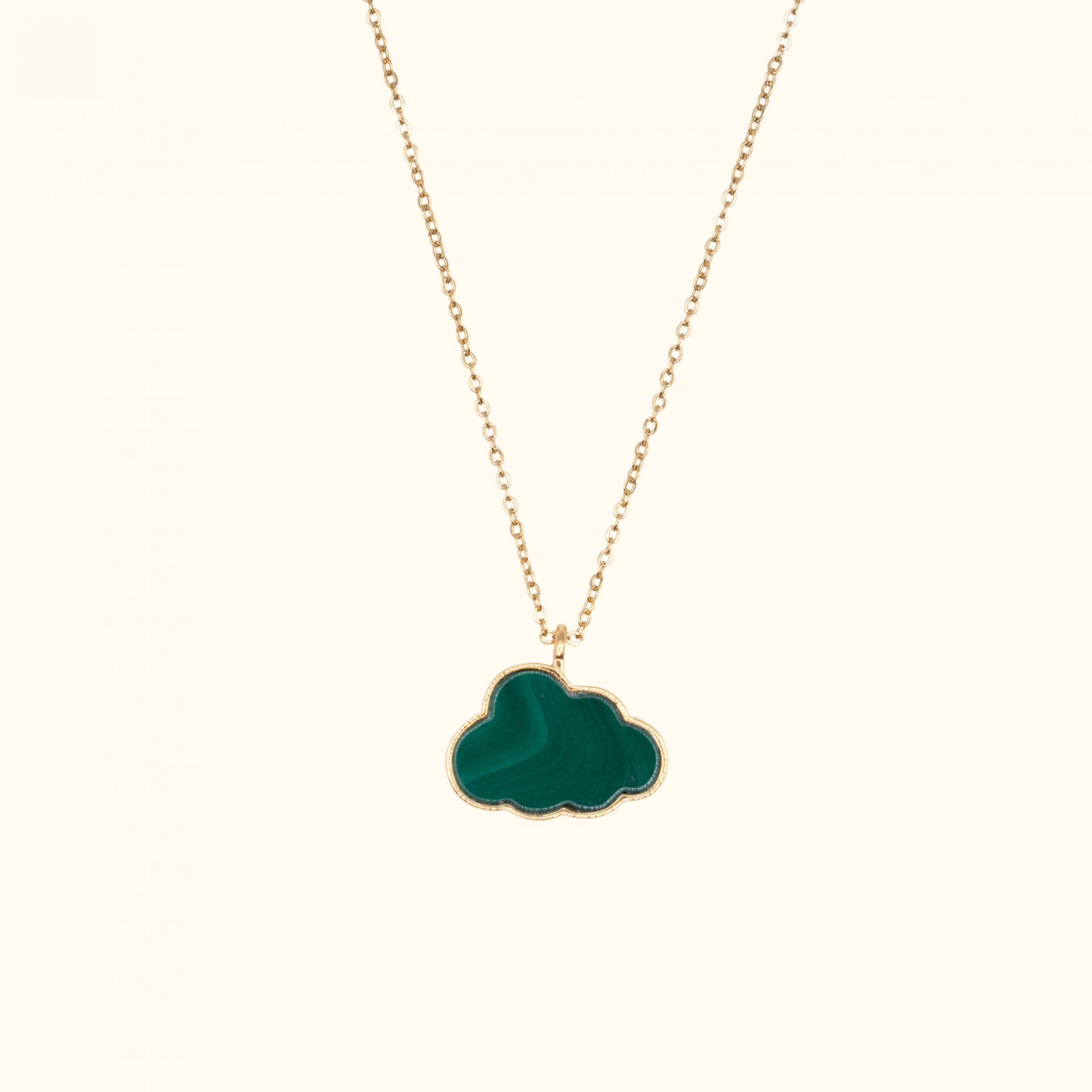 Collier doré à l’or fin orné d’un pendentif nuage en malachite.