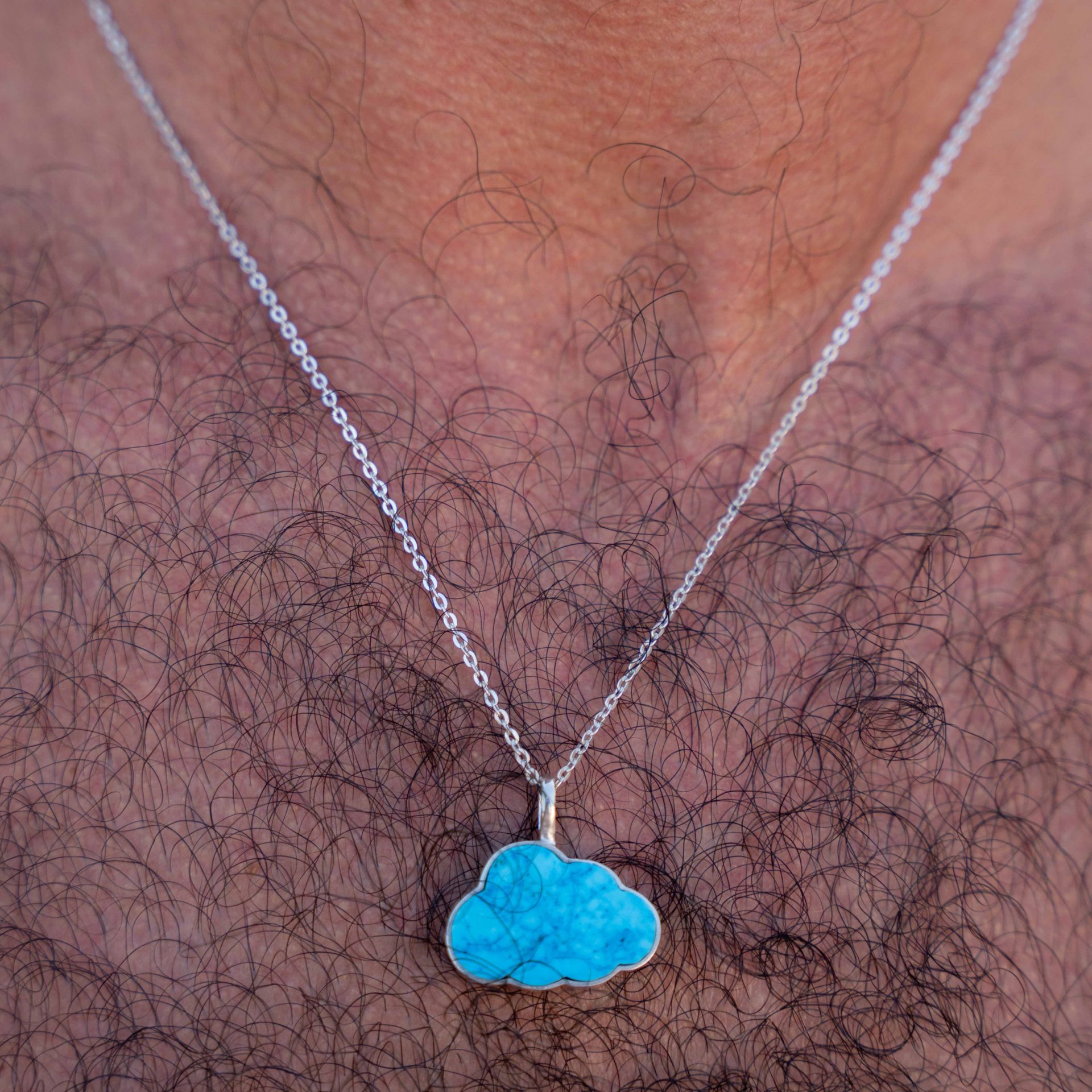 Collier en argent massif, 925 mil orné d’un pendentif nuage en turquoise.