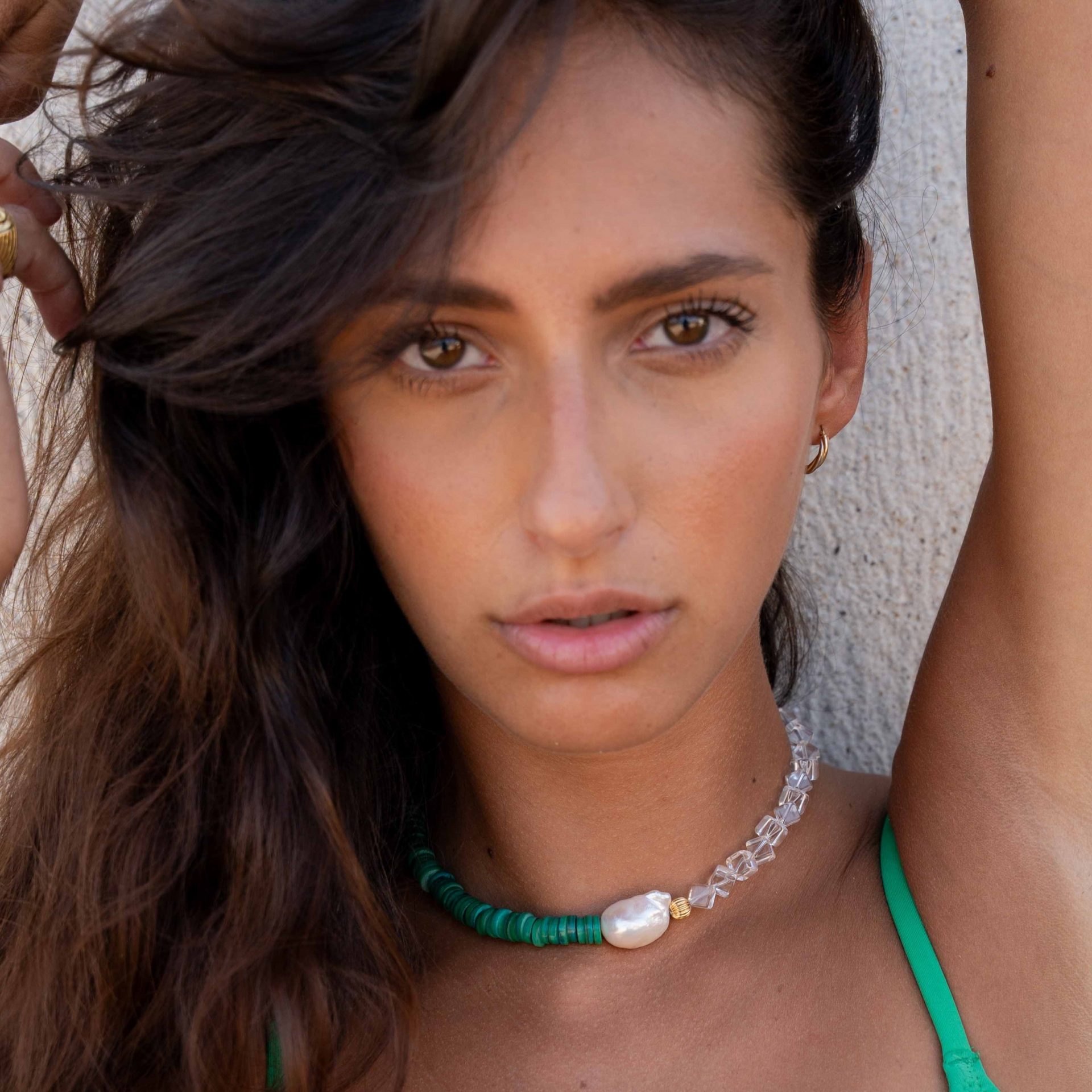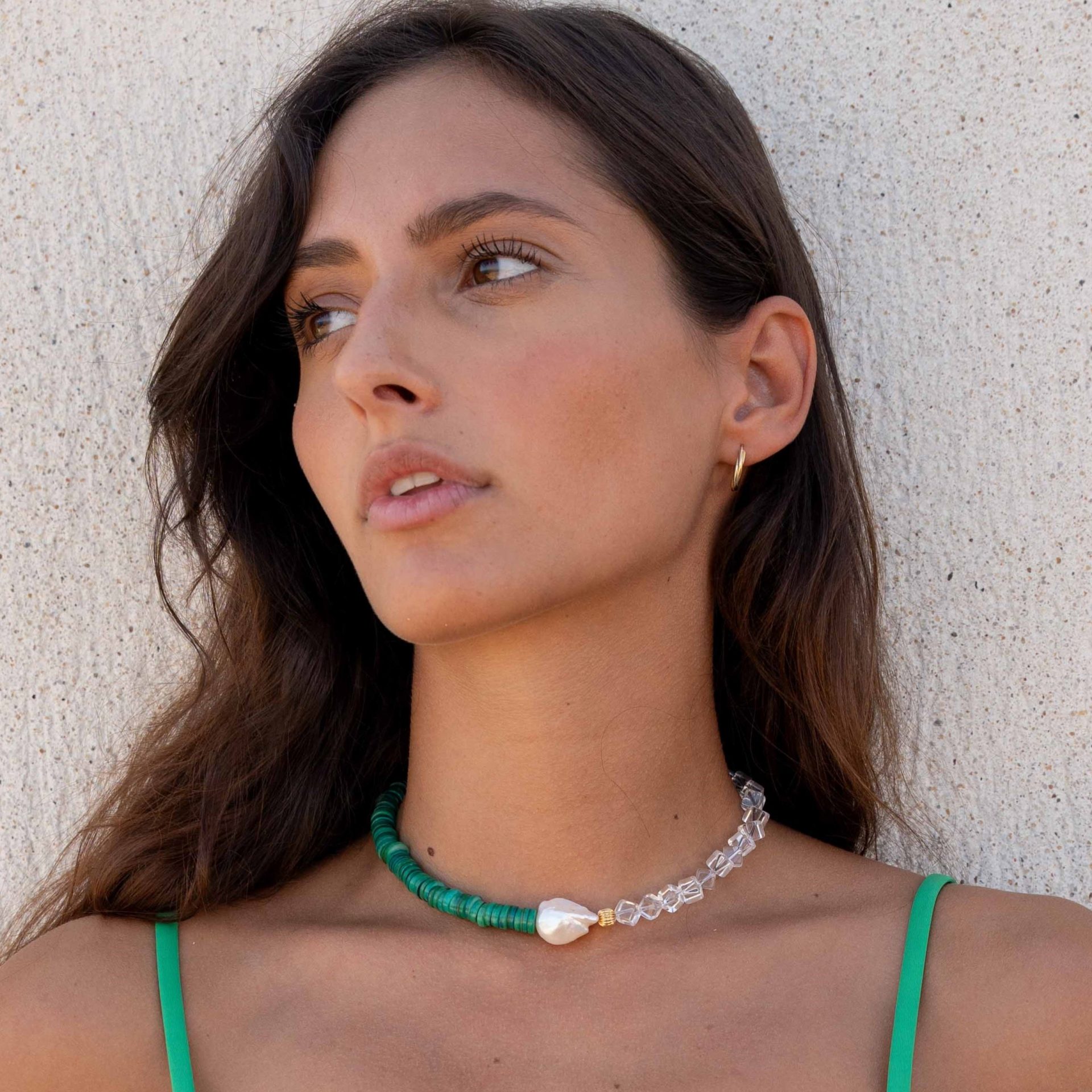 Un des best-sellers de cette nouvelle collection est le ras de cou en coquillage Heishi vert !